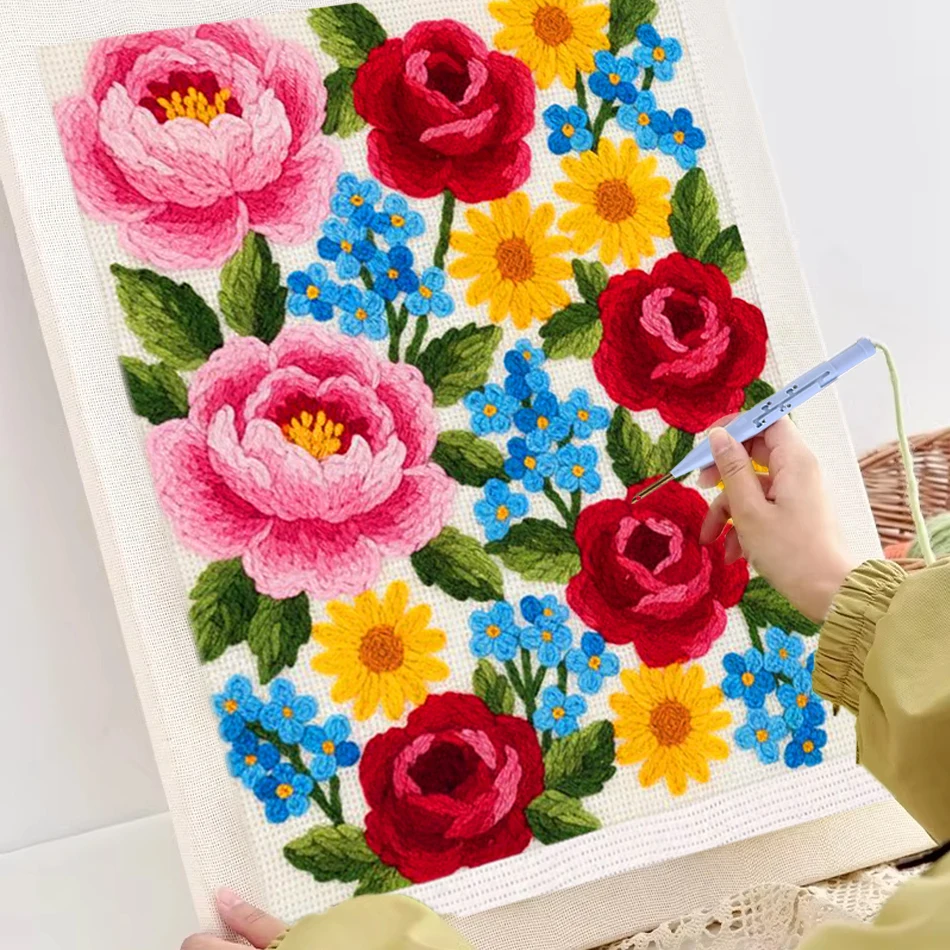 Kvést kytice udeřit jehla výšivka sada souprava růže pivoňka malba 25x30cm šicí výšivka soupravy s formulovat řemesel pro dospělé di