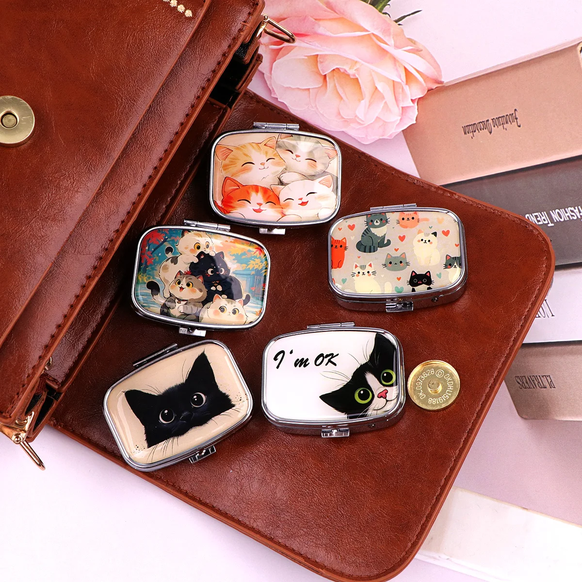 Černá kocour pilulka boxů kreslený živočich zapečetěné subpackage pouzdro přenosné cestovní šperků skříňka mini organizátor úložný lék pouzdro