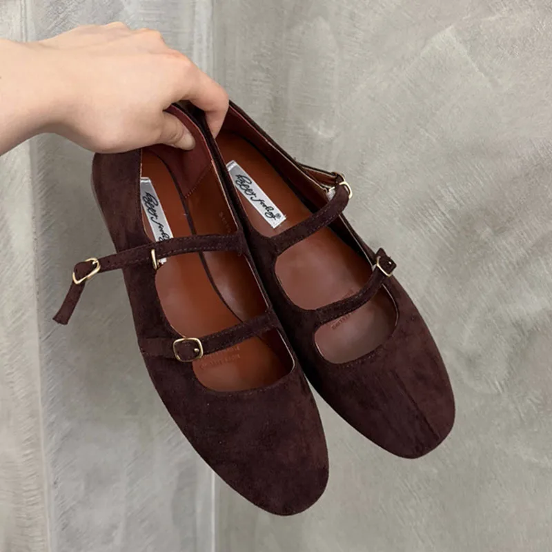 2025 ženy plochý obuv móda kolo prst dámy ležérní šaty červená hnědá maria Jana obuv měkké plochý pata outdoorové po jednom obuv nový