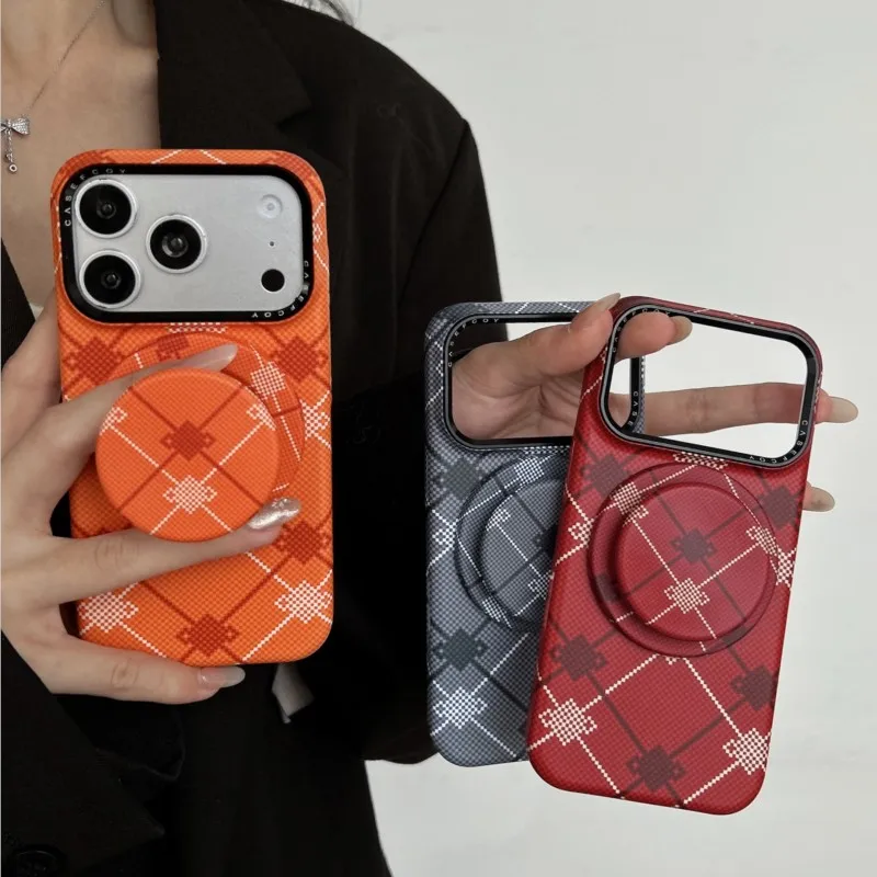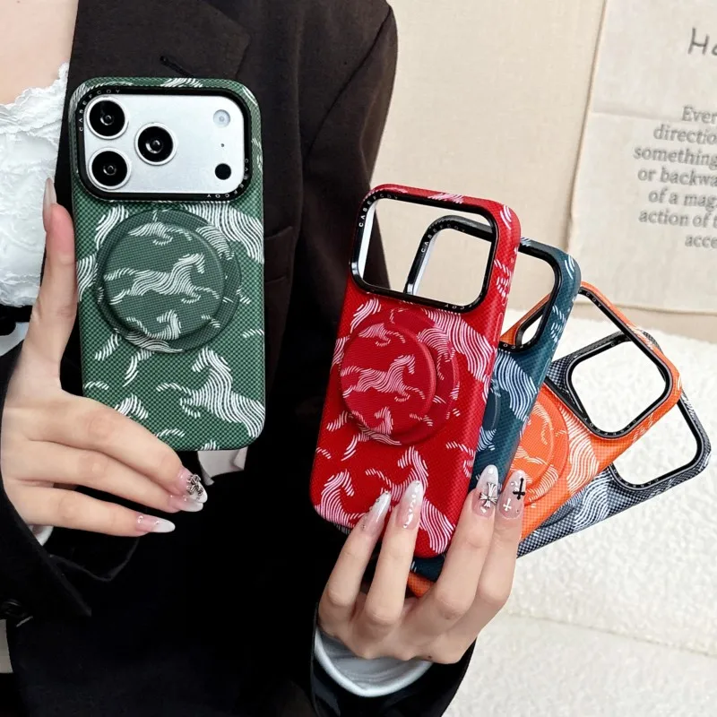 Vlákno textura kůň střih s pro magnetický pop nástrčkový držák telefon pouzdro pro iPhone 17 16 15 14 13 řada pro/pro maxi cover-