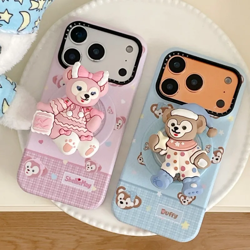 Kawaii 3D kreslený medvěd film pro magnetický pop nástrčkový stánek telefon pouzdro pro iPhone 15 16 17 pro maxi pro magnetický namontovat zakrýt
