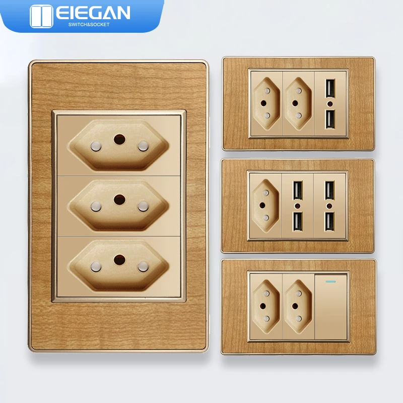 ELEGAN plamen zpomalovač PC imitace dřevo panel brazílie standardní nástrčkový dvojitý USB 2.1A Typ C zeď nástrčkový spínač švýcarsko zlato