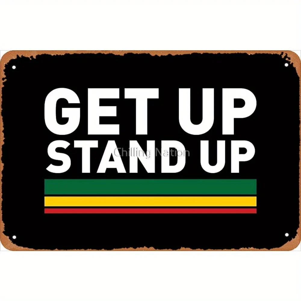 Dát se nahoře stánek nahoře reggae rasta vibes kov plechovka značka - vintage zeď umění s drzý bílá lettering, zelená & žlutý pruhy, černá B