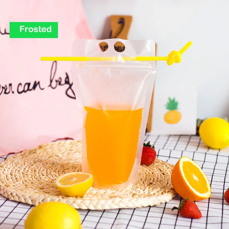 50ks magická napít se pouches s sláma resealable led napít se pouches smoothie pytle s pití brčka znovu použitelný džus pouch
