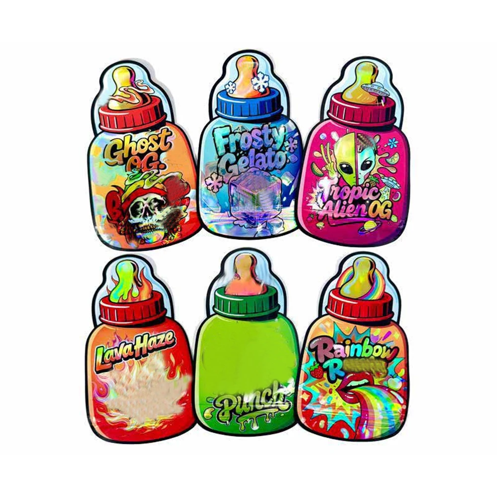 3.5G láhev tvarované prázdný nepravidelný zemřít krájet výtvarník mylar pytle plastový na zip zamknout úložný pouch pach bezpečný 3.5 balení pouzdro