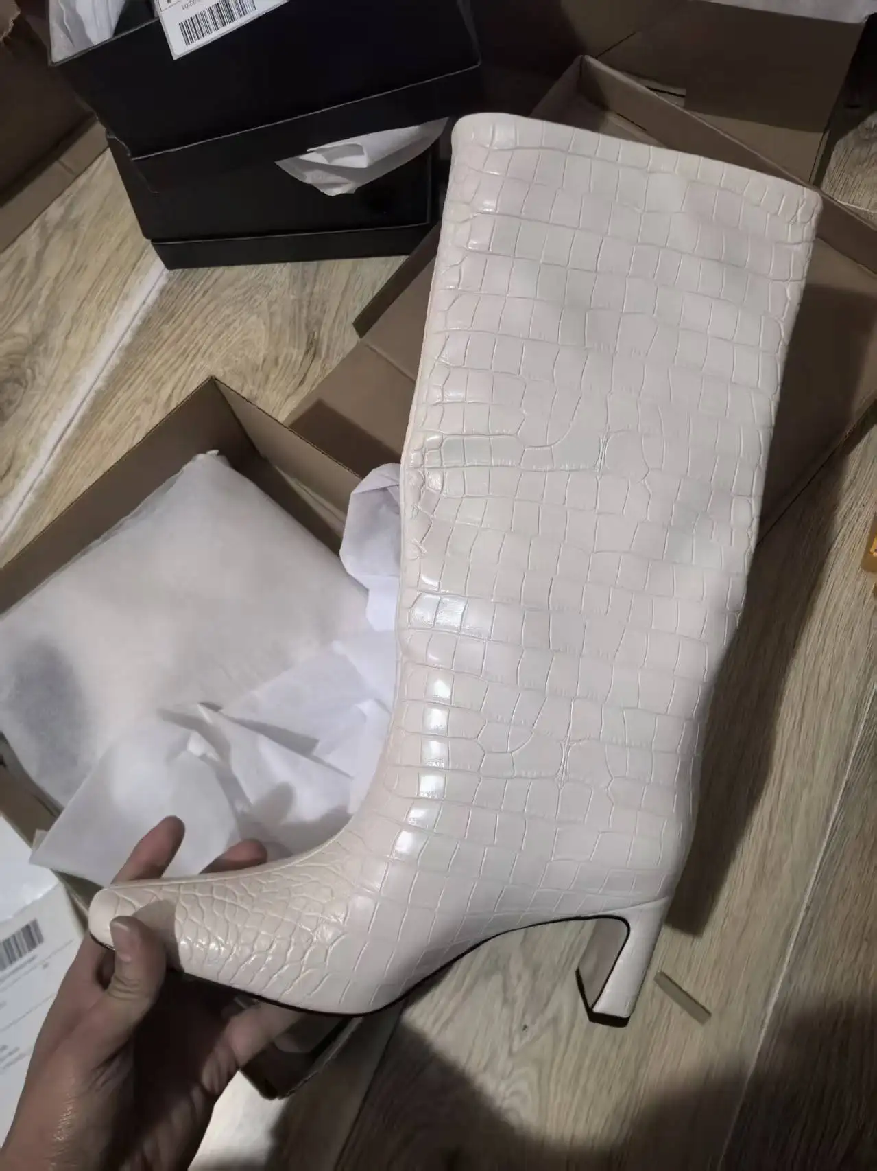 Nový kámen střih černá červená moderní mid lýtko boty podzim zima čtverec prst high-heeled krátký plyš teplý ženy boty rozměr 45