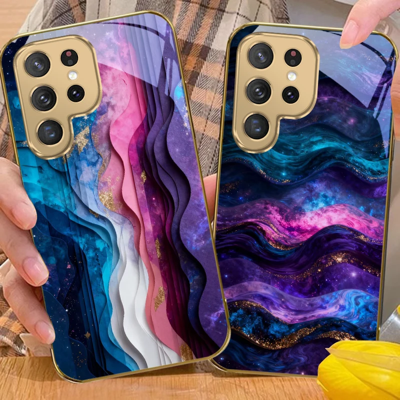Barevný hornina strata pro Samsung galaxy s20 fehu s21plus s22 23 plus s24 uitra 25ultra S21+ S9+ 22plus S22+ zlatý sklo telefon pouzdro