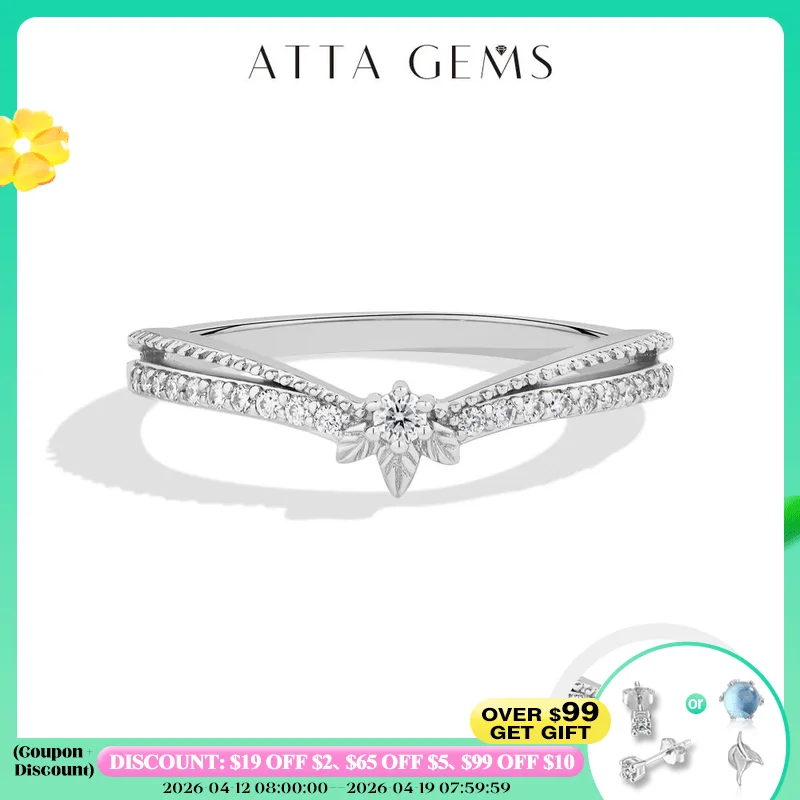ATTAGEM stohovatelná syntetická moissanite prsten pro ženy ruční 925 mincovní stříbro žlutý zlato pokovené koruna svatební pás šperků