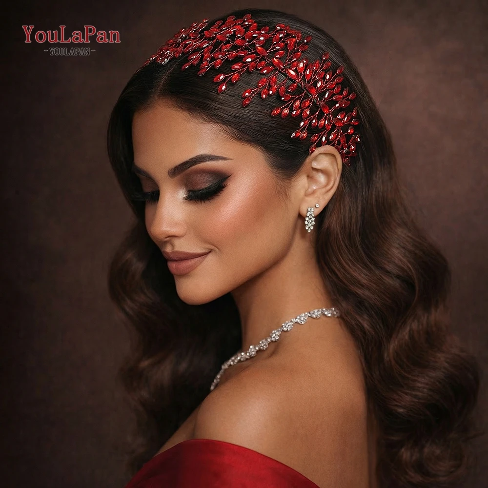 Youlapan módní červená barva drahokamu ženy čelenka vlasy příslušenství nevěsta večírek vlasy obruč svatební ruční headpieces HP987