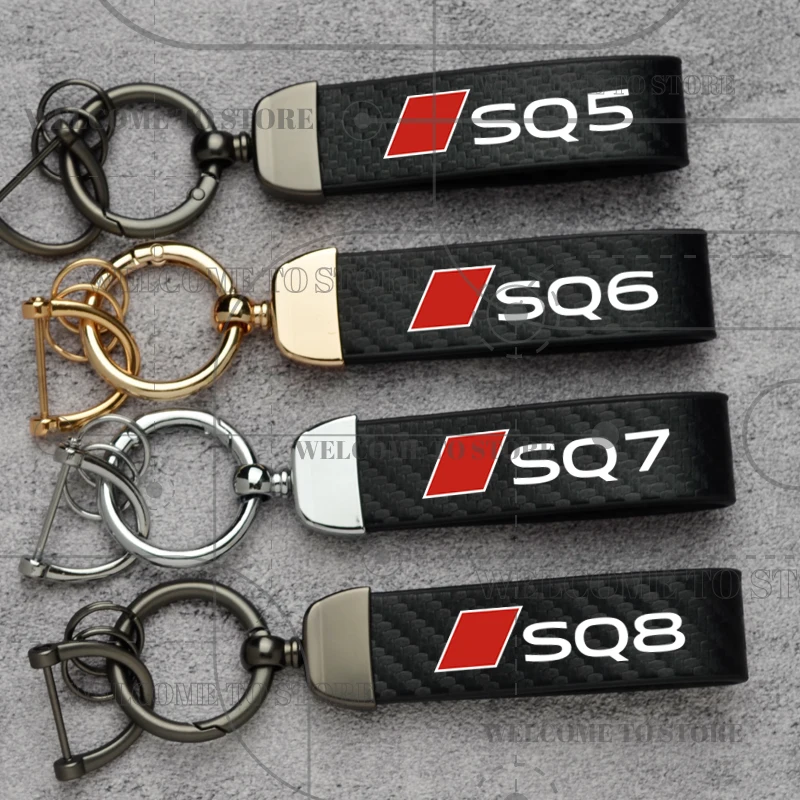 Uhlík vlákno pro SQ5 SQ6 SQ7 SQ8 e-tron řada emblem móda kůže klíčenka muži ženy auto klíč prsten auto příslušenství