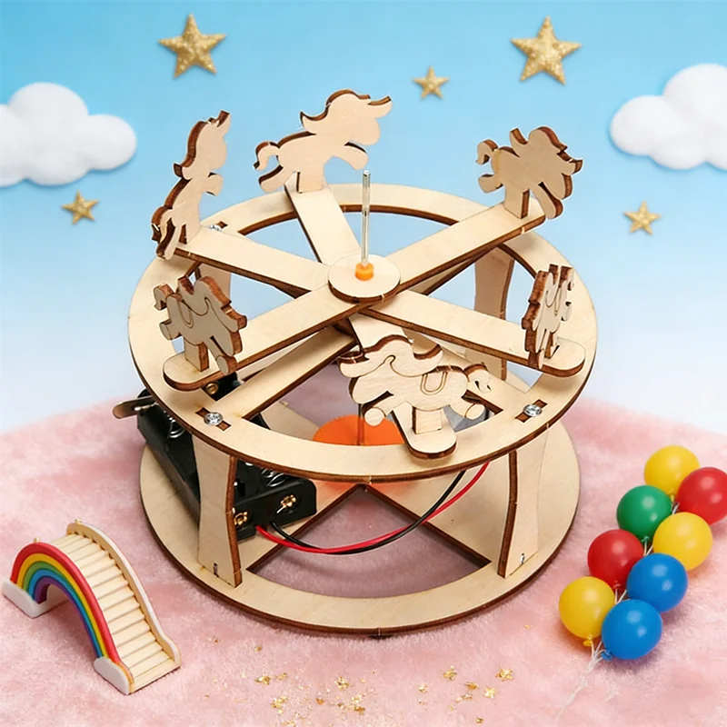 Huahuabuild jejích vlastní kolotoč vzdělávací hračka sada s 3D dřevěný hádanky a DIY nauka promítat kitshuahua