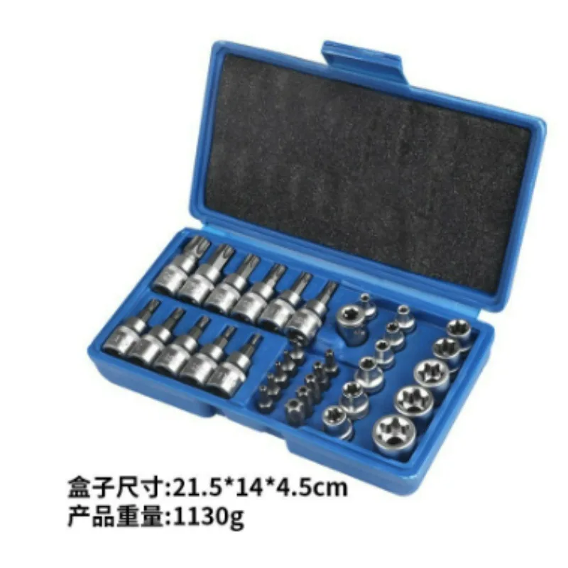 34PCS torx & e-torx kousek nástrčkový sada 1/4" 3/8" 1/2" pohon pánský ženské záruka bitech nářadí pro šroubováků