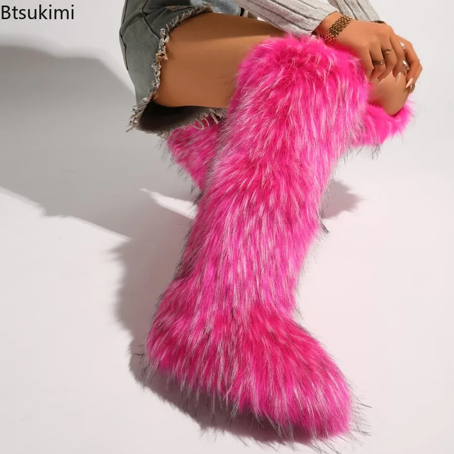 2025 ženy zima stehno vysoký načechraný boty dámy srstnatý falešný lišák kožich dlouhé teplý obuv nový hottie YK2 plyš koleno vysoký kožich boty