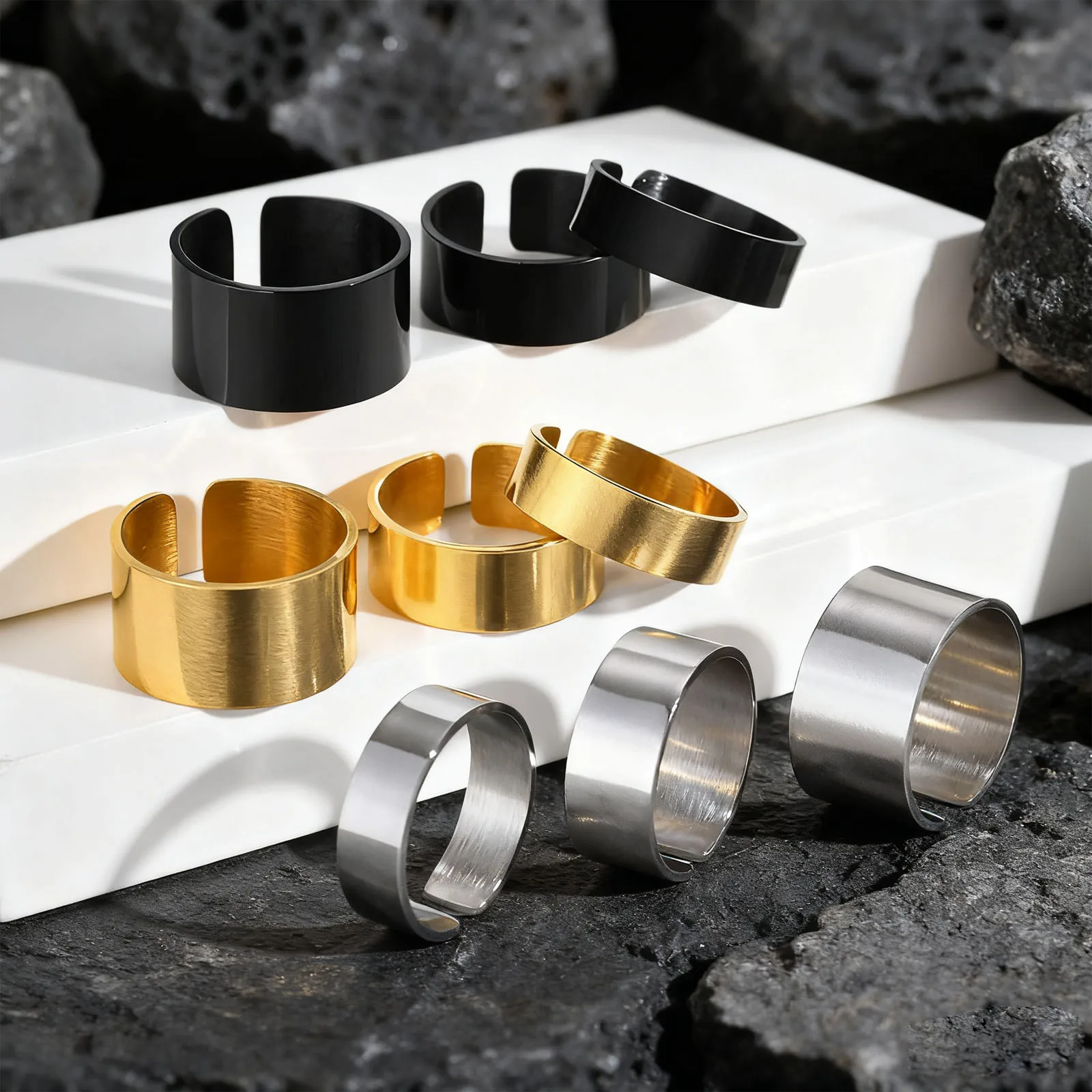 Punková otevřený prsten pro muži chlapci, vysoký leštěný nerez ocel nastavitelný skloňovat prsten, simpe kauzální volný rozměr prsten gi