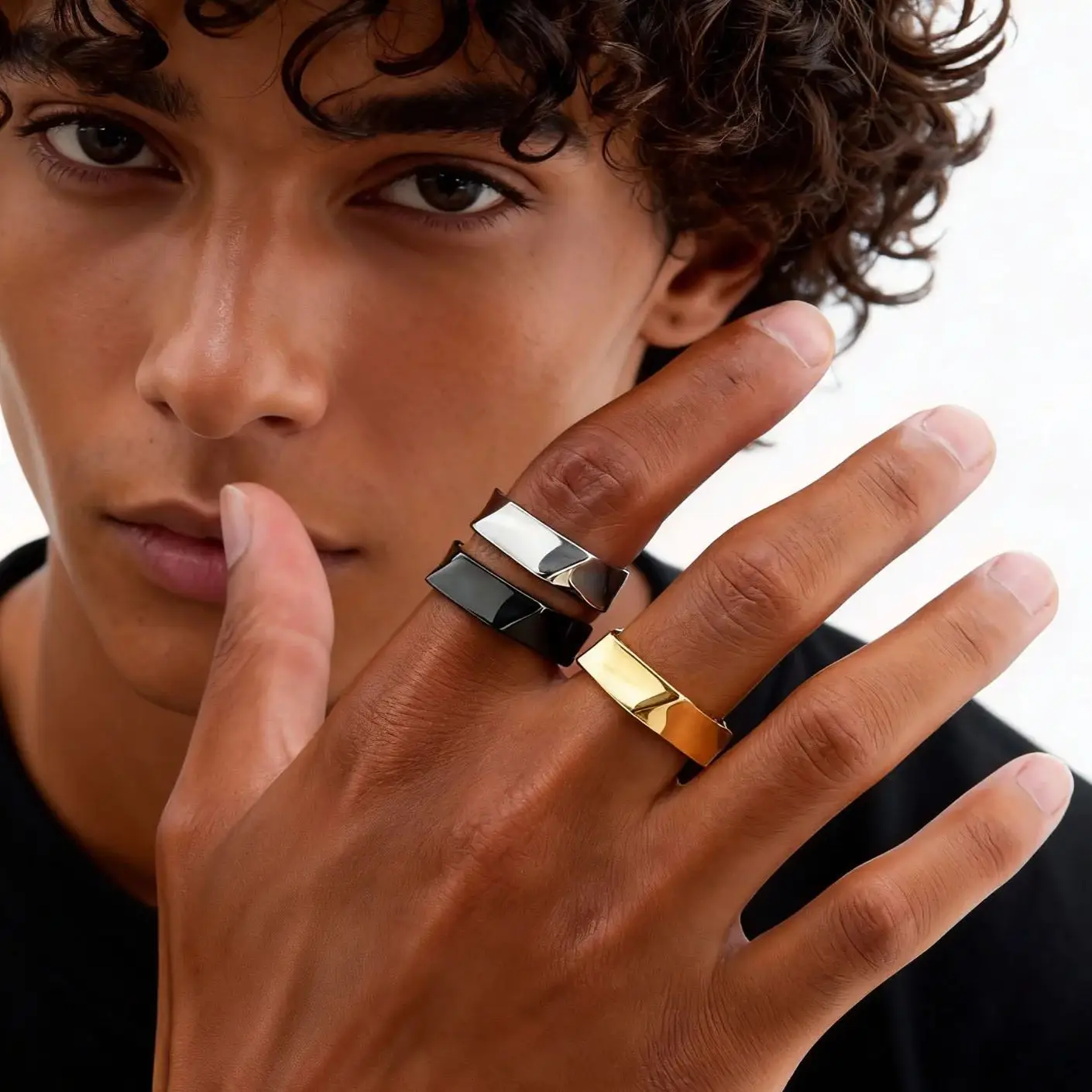 Jednoduchý módní pentagonal pánské prsten, vysoký leštěný nerez ocel stříbro zlato černá barva prsten, šperků dar pro manžel táta syn
