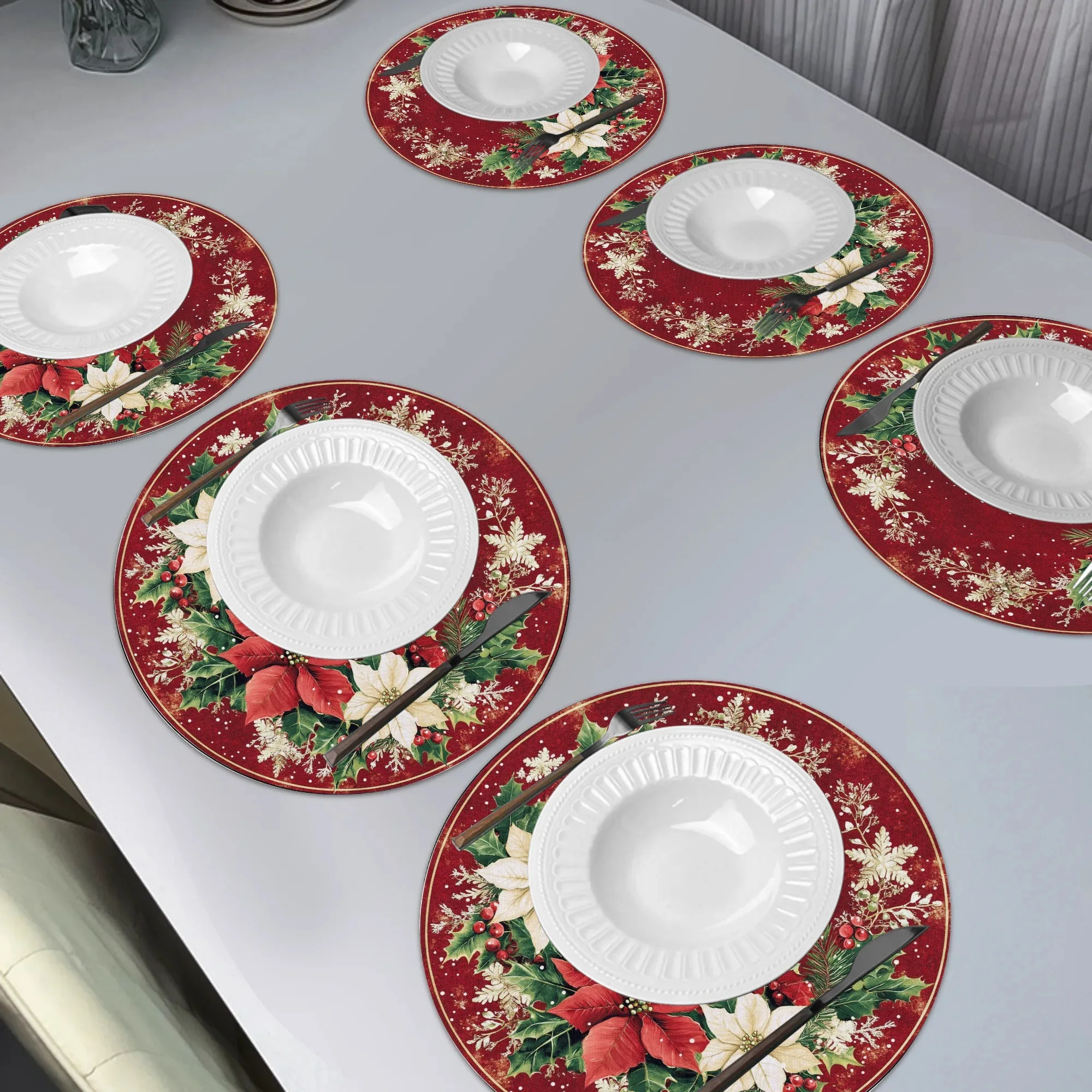 VIKAMA 4/6/8/10PCS vánoce bledule stůl rohož kolo věnec stroj omyvatelné kuchyň jídelní stůl rohož svátek dekorace