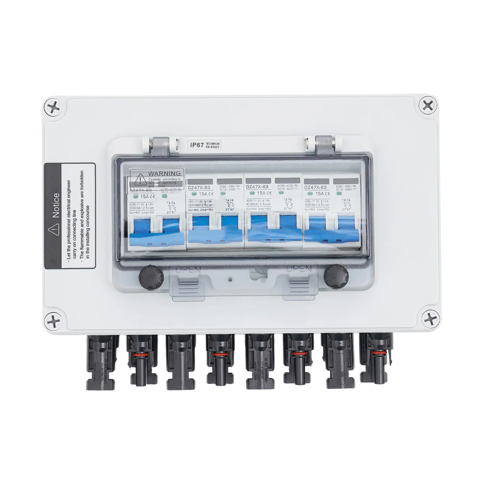 15A fotovoltaických stejnosměrný spínač 4-input a 4-output PV combiner skříňka vodotěsný solární obvodový jistič pro outdoorové solární panely