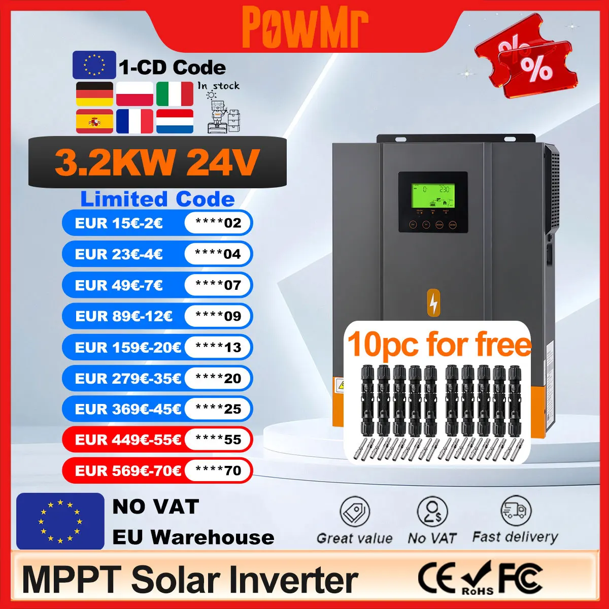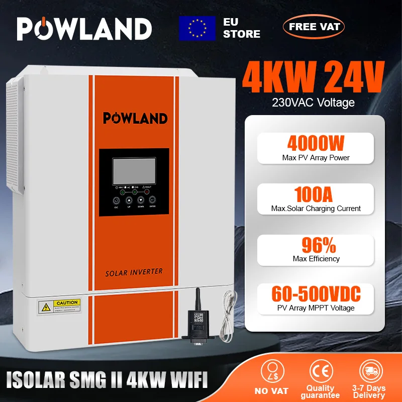 POWLAND 4KW 24v hybridizace solární invertor EU prodejna paralela mppt volný dodání invertor s bms volitelné WIFI čistý sinus vlna RS485