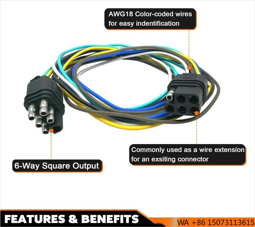 6-way čtverec přívěs drát prodloužení smyčka 18-gauge 36" pánský & ženské končí 6-pole konektor souprava