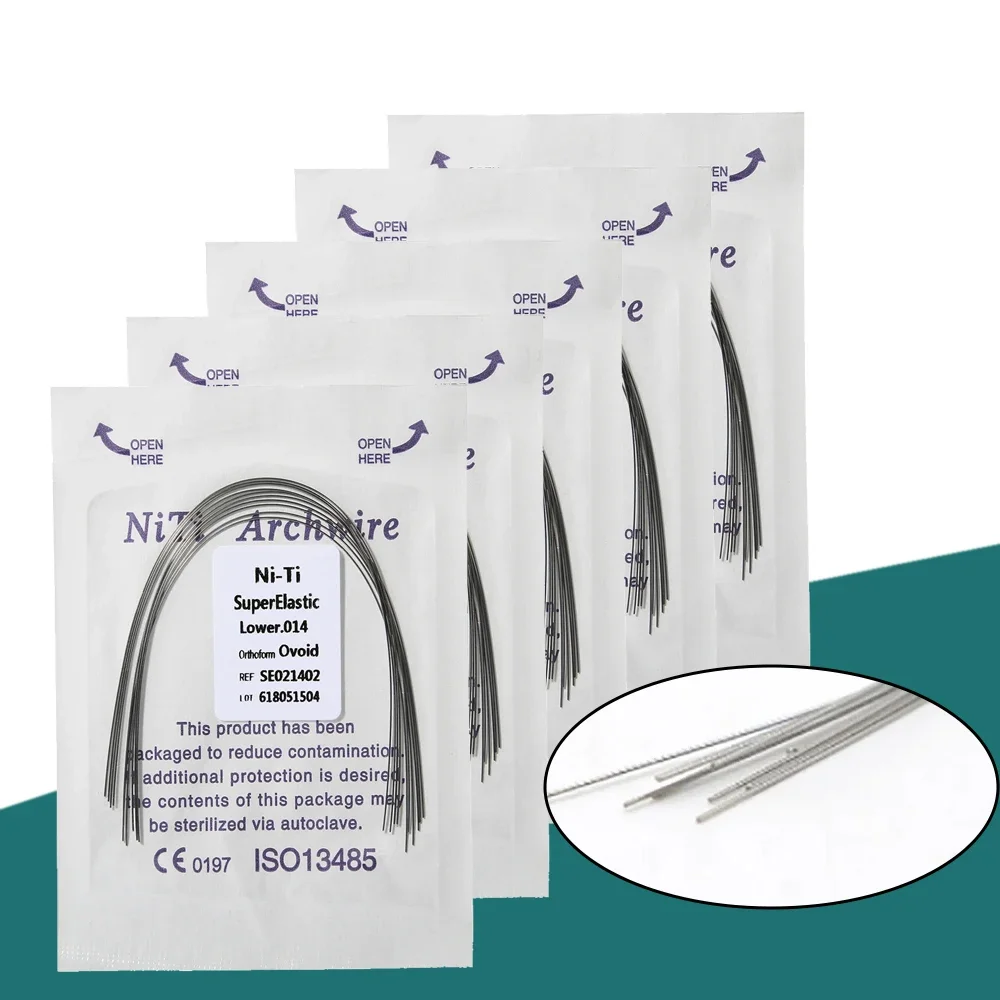 2packs 20ks ortodontické zubní niti drát super elastická niti oblouk drát oviod/natural/square form(1pack horní a 1pack lower)