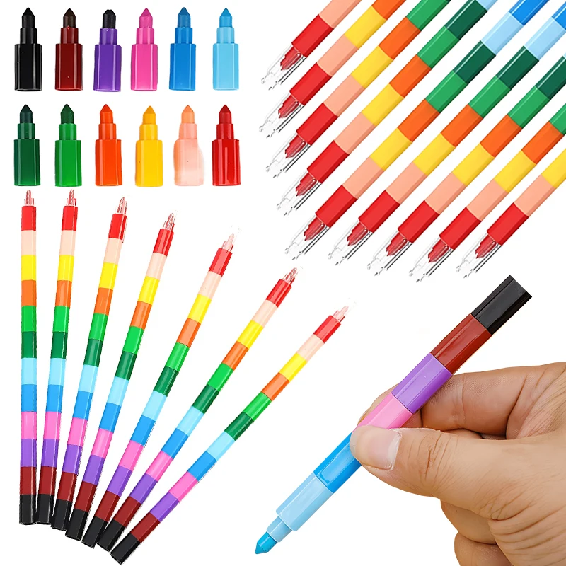 Stohovatelná pastelky 12-color budova bloků pastelky umění DIY kresba graffiti zásoby úřad škola papírnictví studenti dárky ZYF
