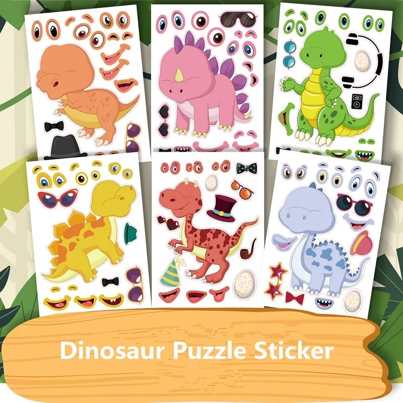 12ks / pack dinosauři učinit jejích vlastní obličej DIY puzzle nálepka kůzle nálepka dar pro děti