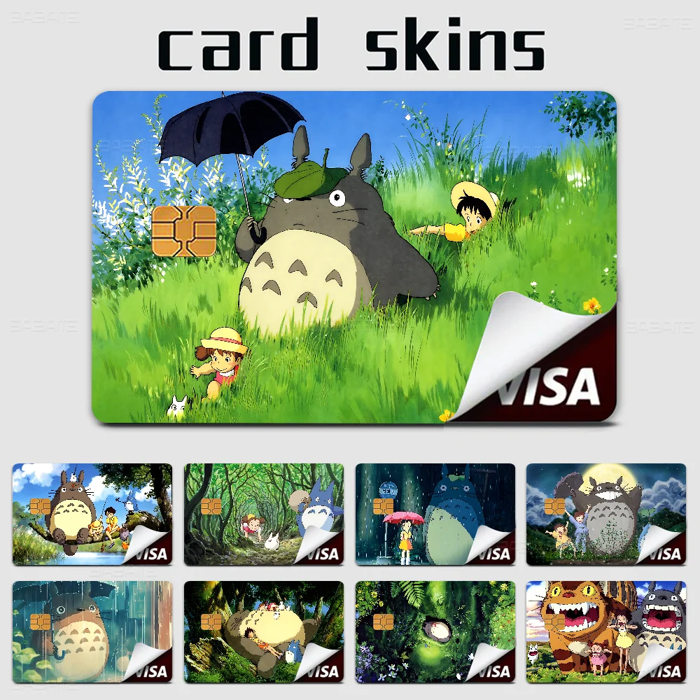 Kawaii t-totoro anime dívat se na karta kůže nálepka pro vízum banka karta dopravní karta vodotěsný nálepka proti poškrábání ženy dar