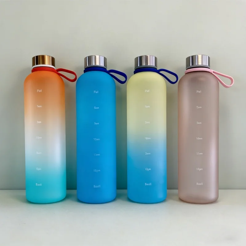 1 litrů voda láhev motivational pití láhev sportovní voda lahve s čas záložka nálepky přenosné znovu použitelný plastový pohár