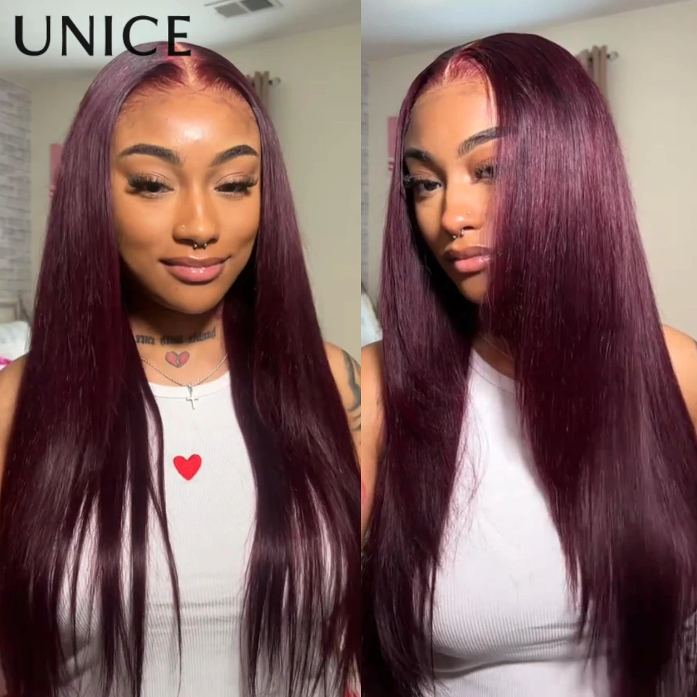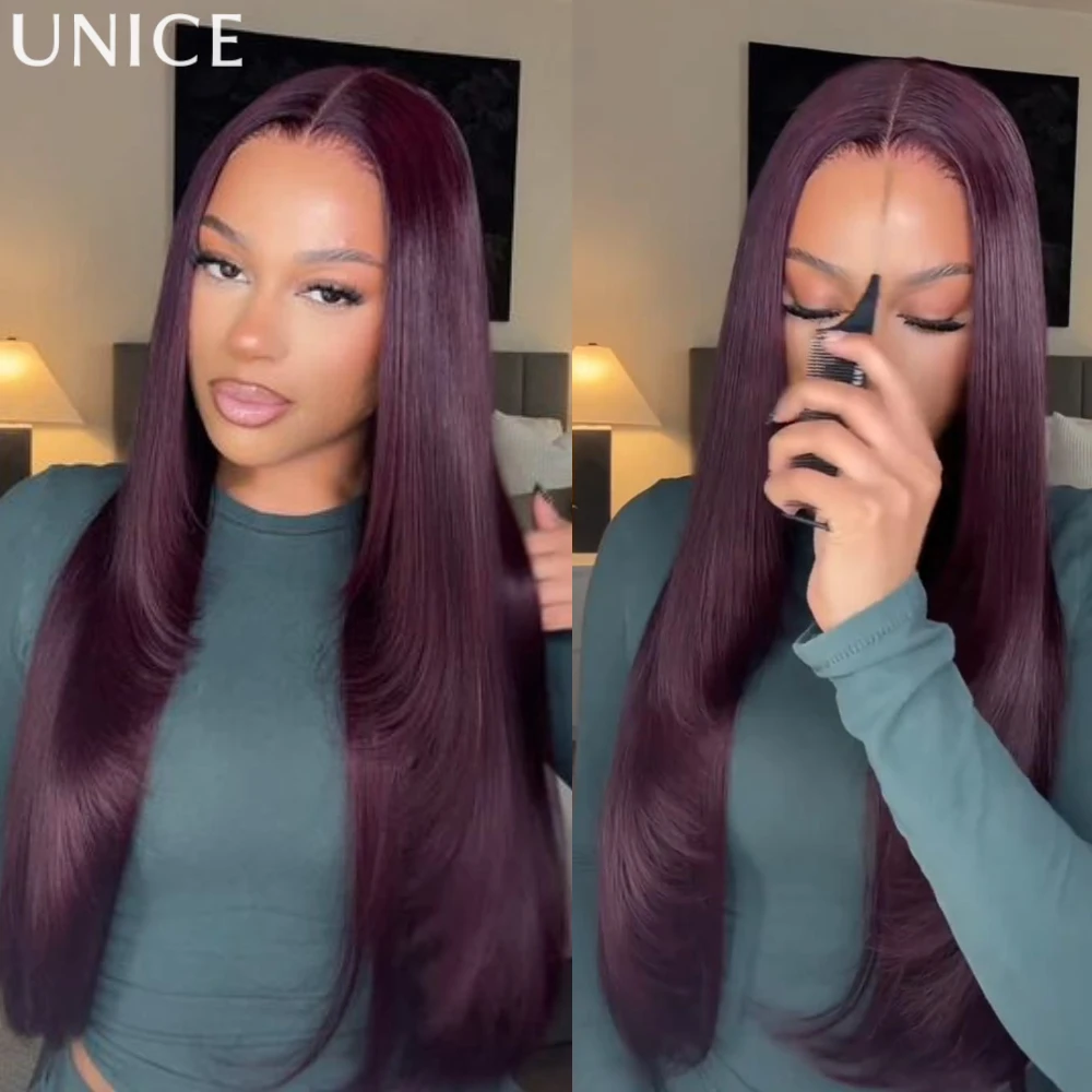 UNICE vlasy černá třešeň barevný 7x5 krajka 180% hustota vrstvené krájet přímo člověk vlasy paruka & volné vlna záclona ofina paruka
