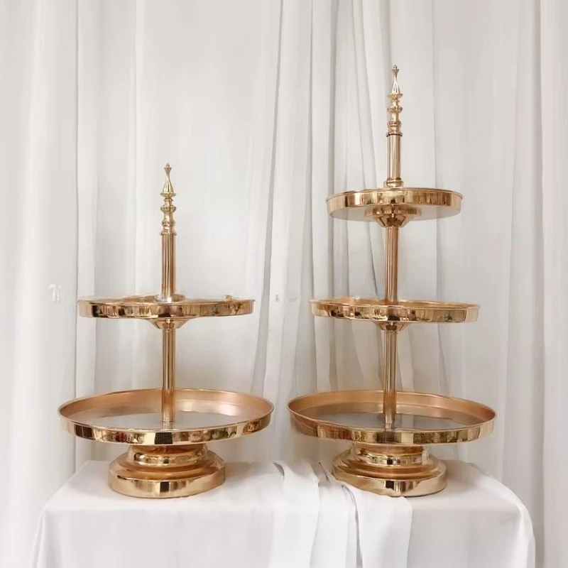 Moderní odpoledne večírek bufet stravování stánek dezert jídlo servírovací ocel displej stoupačky zlatý podnosy