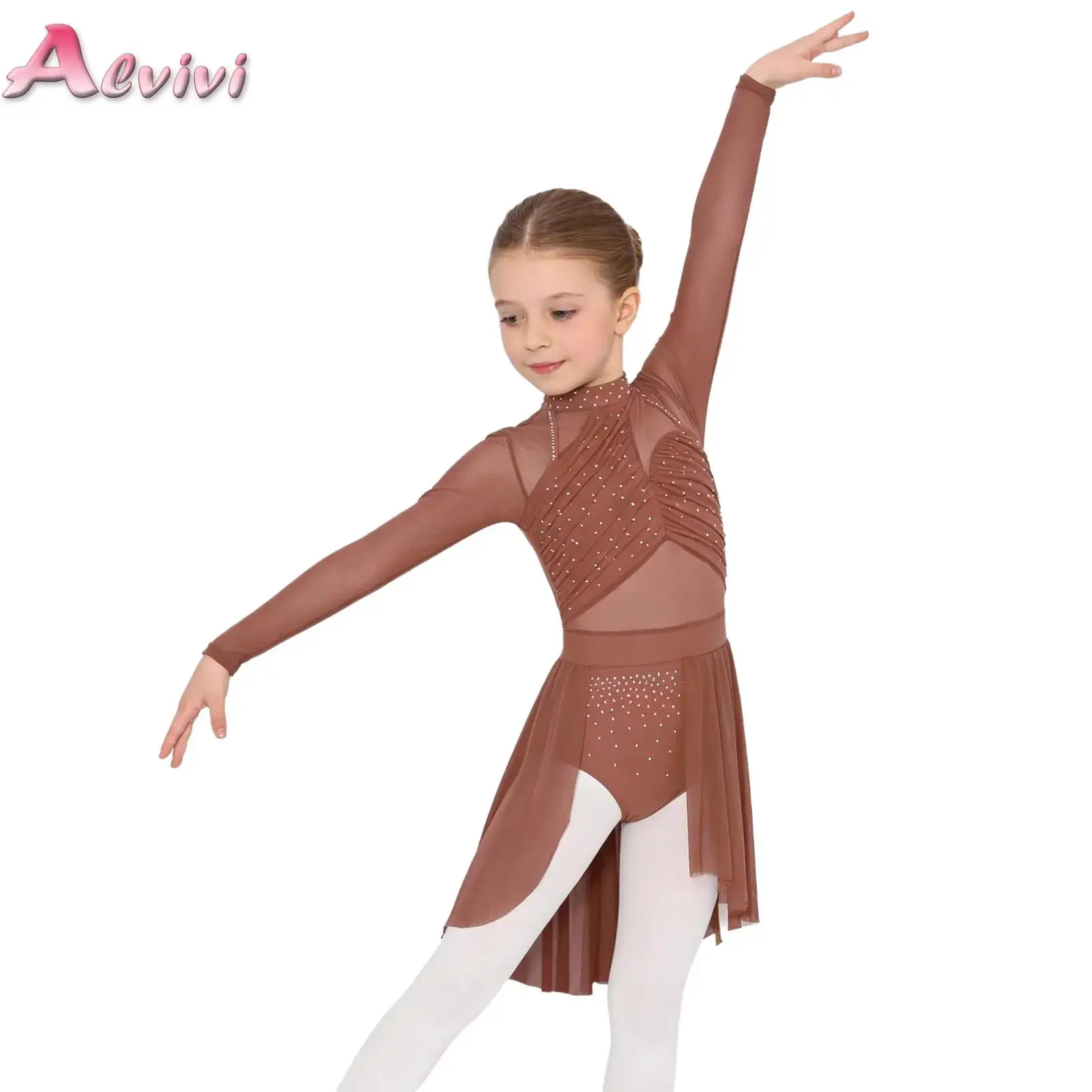 Děti dívčí lesklý kamínky lyrické tančit kostým gymnastika figura bruslení balet dres šaty úplný pletivo ruched trikot šaty