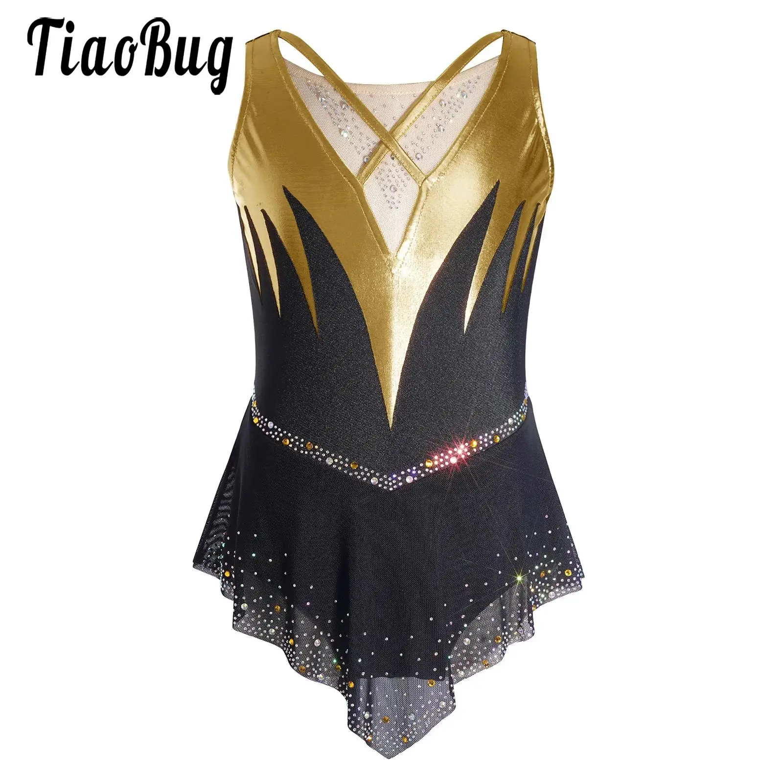 Děti dívčí figura bruslení lyrické gymnastické představení kostým kolečkové bruslení bez rukávů lesklý kamínky pletivo trikot šaty