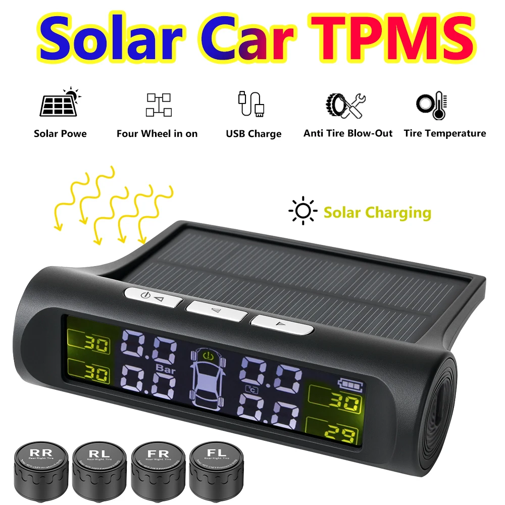 Auto solární tpms pneumatika měrný tlak záruka alarm systémy guma teplota monitor monitoring 4 exteral ​auto příslušenství univerzální