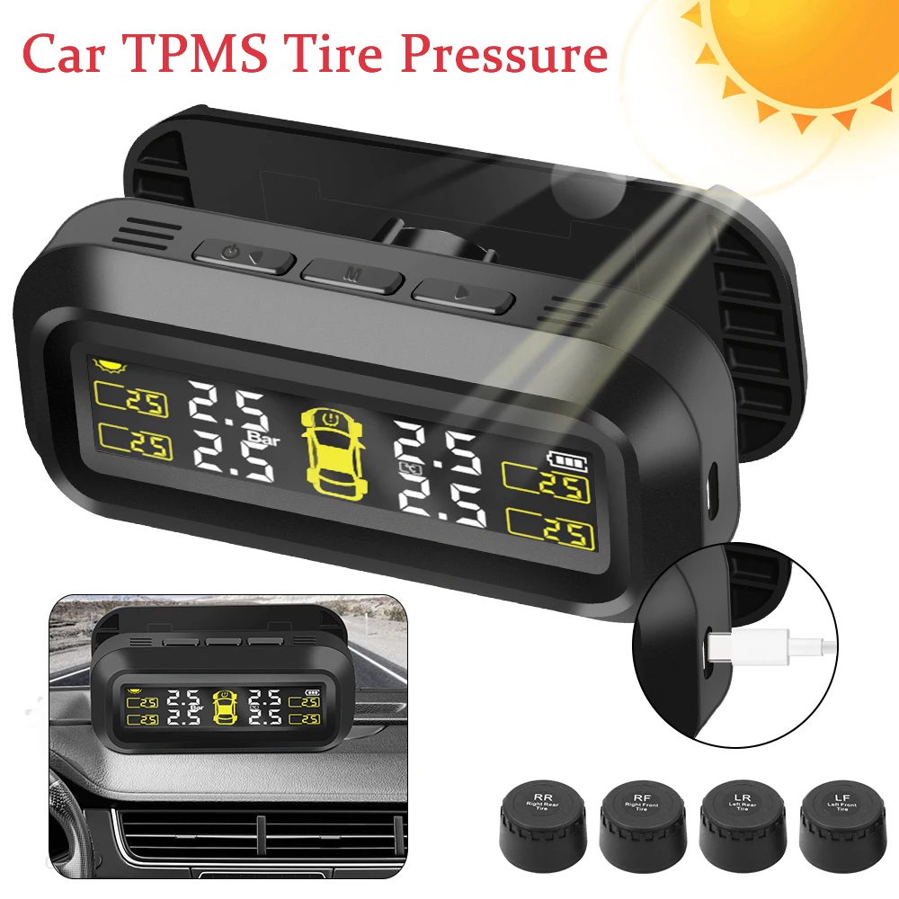 Tpms solární pneumatika měrný tlak senzor auto pneumatika měrný tlak monitoring systém s 4 kolo vnitřní externí čidel