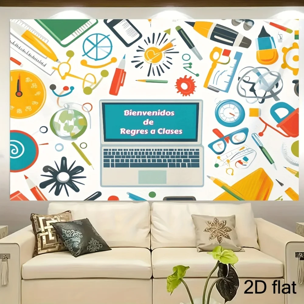 2D plochý, 1ks španěl back-to-school večírek prapor - "bienvenidos de regreso a clases" učebna dekorace s notebook, tužky,