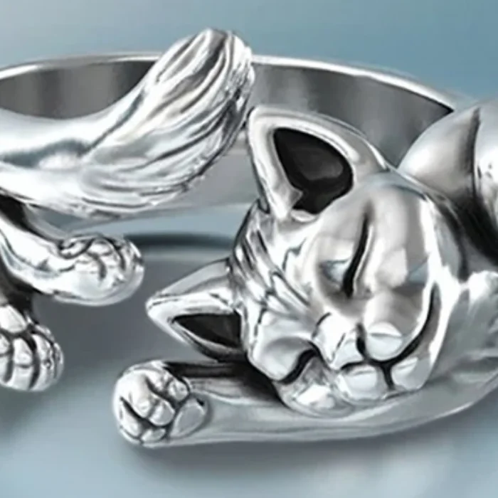Roztomilá stříbro barva slitina kocour prsten moderní kocour oko otevření nastavitelný prsten pro ženy módní šperků příslušenství dar