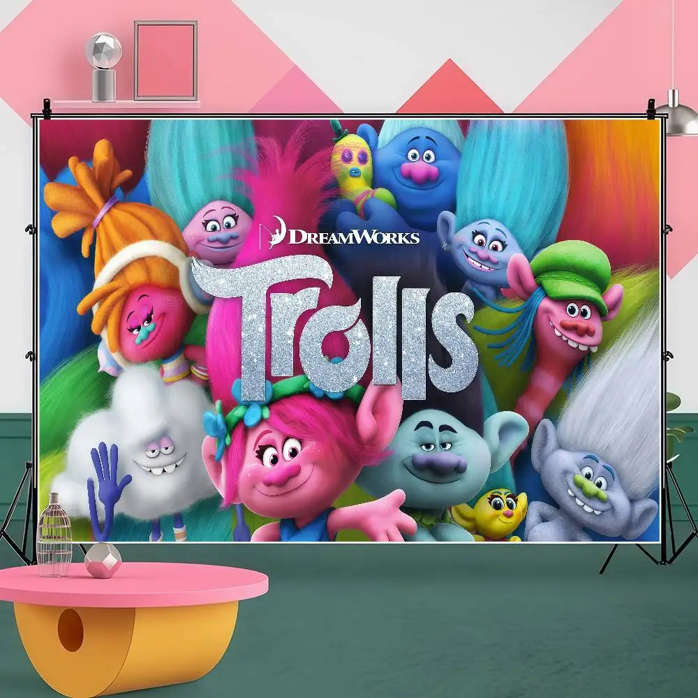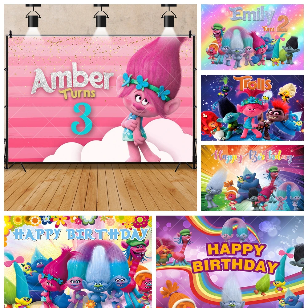 Disney trolly kreslený roztomilá narozeniny večírek prapor backdrop nestandartní děťátko pokoj děti plakát fotografie ateliér pozadí dekorace