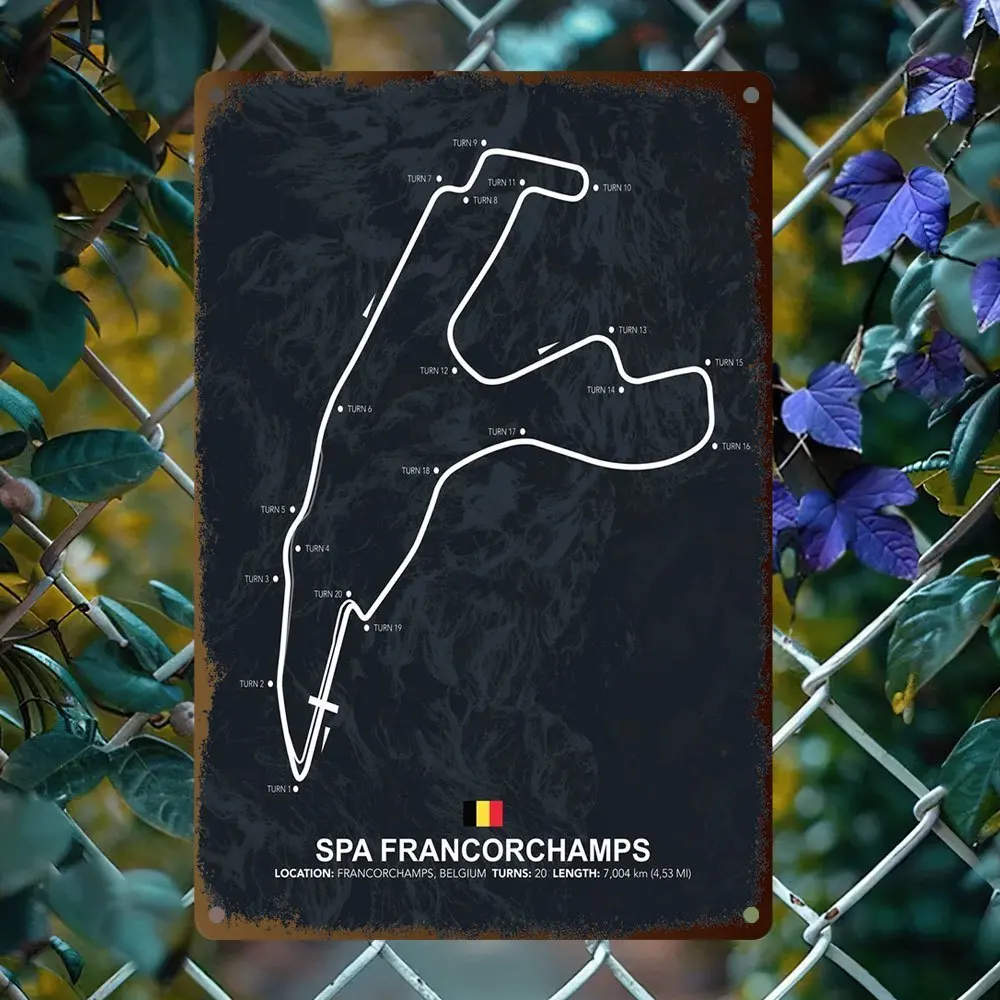 Vintage kov plechovka značka - lázeňského francorchamps přihnat se trať babočka síťkovaná zeď umění pro domácí, kavárna, anebo autodílna dekorace rustikální žehlička plak s det