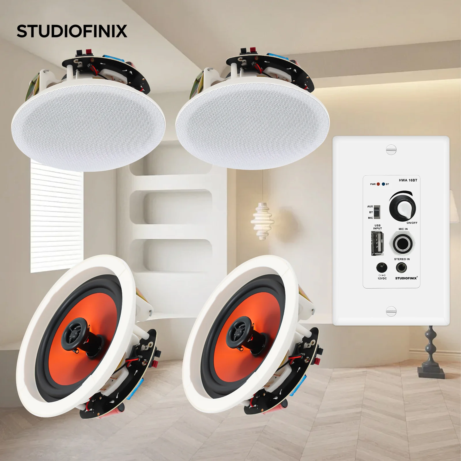 STUDIOFINIX 6.5'' 4ks 600W Bluetooth v strop reproduktorů 2cestný spláchnout namontovat systém s zeď zesilovač přijímač pro koupelna