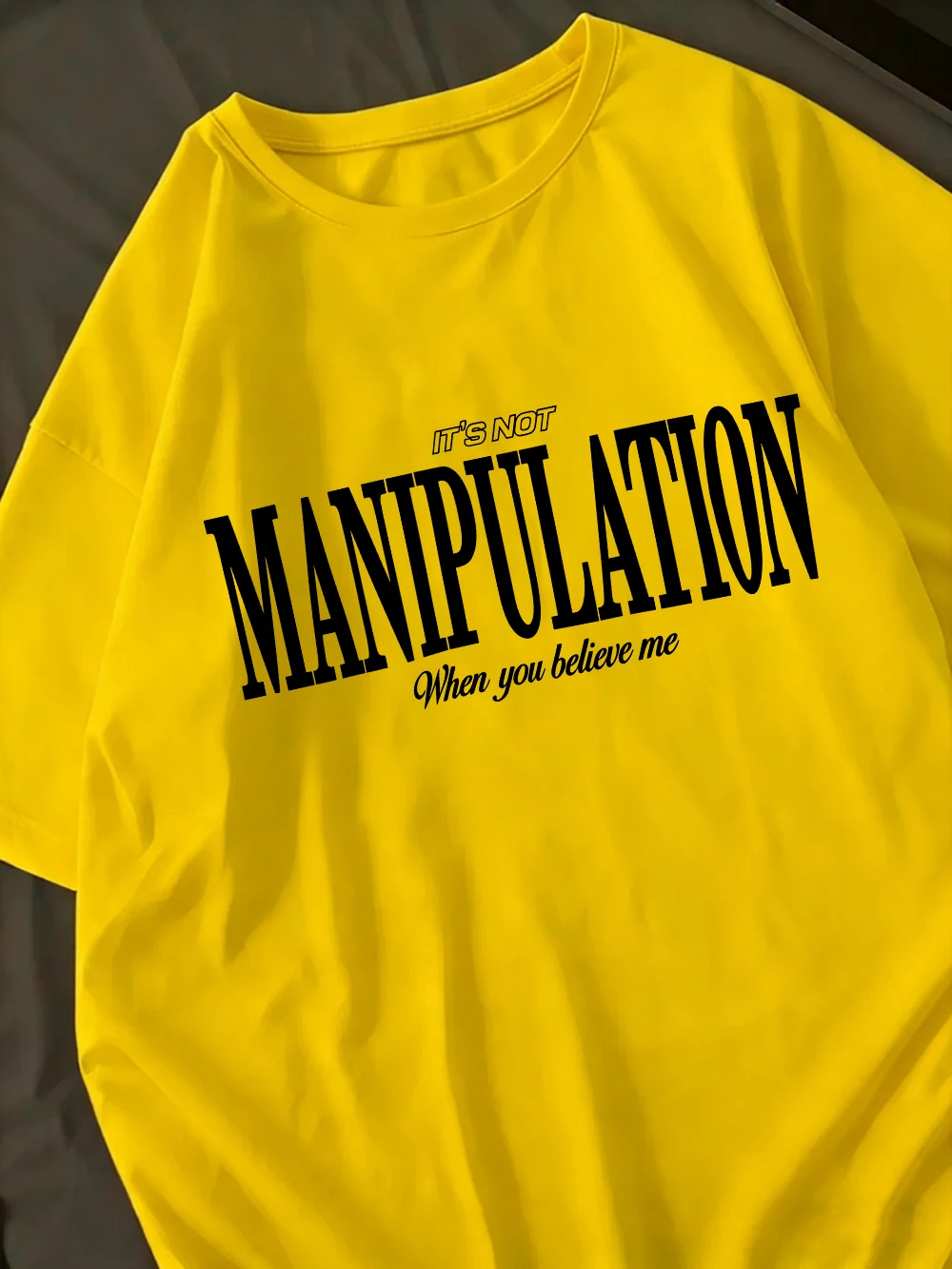 Manipulace až jejích věřit mi otisků trička bavlna ženy léto krátký rukáv T košile měkké nadrozměrné topy základní výstřih do O tees