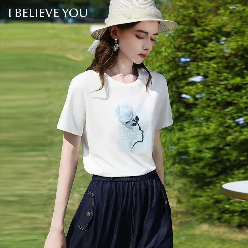 Já věřit jejích krátký rukáv mužstvo krk dámská tričko 2026 nový dopis tisk pletivo 3D růže ležérní commuter nejvyšší pro ženy 2261016234