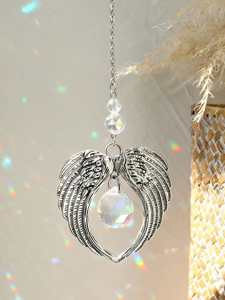 Broušené sklo suncatcher stříbro anděl křídla stained sklo slunce lapače slitina závěsný dekorace hranol duha tvůrce auto přívěsek dekorace