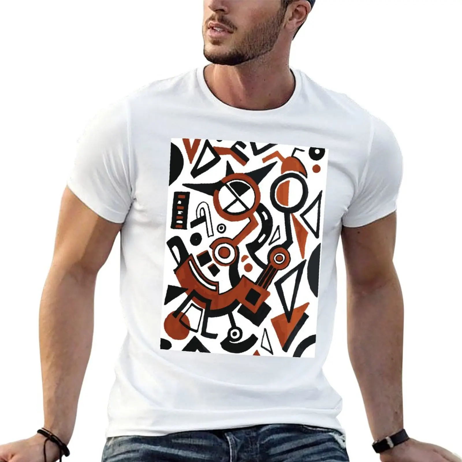 Bavlna linky - práce vorticism oranžová muž vysoký a tričko černá geometrické kvalita t košile