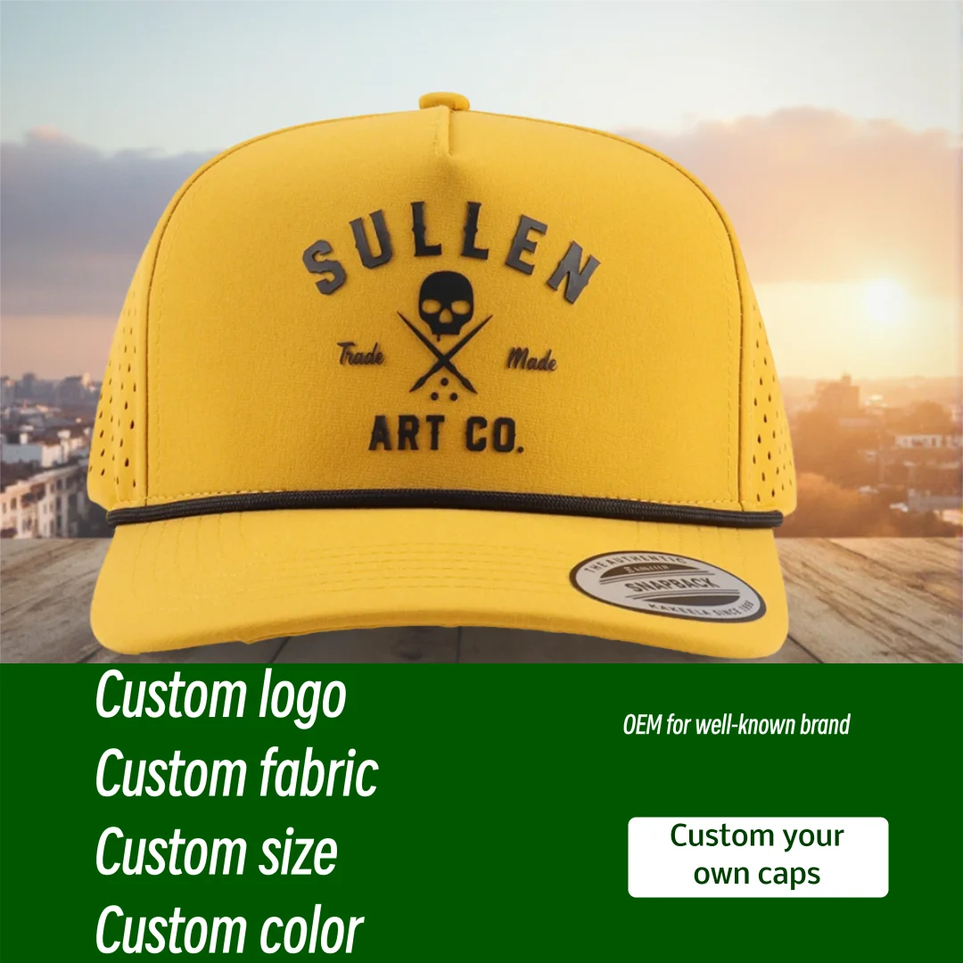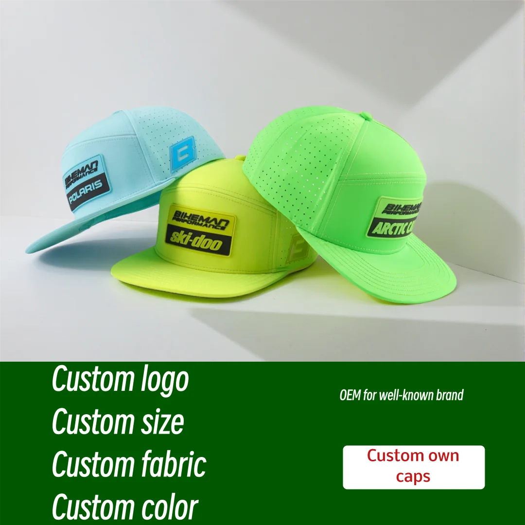 Vysoký kvalita 6-panel snapback čepice voda odolné laser krájet děrovaný díra prodyšné představení adekvátní