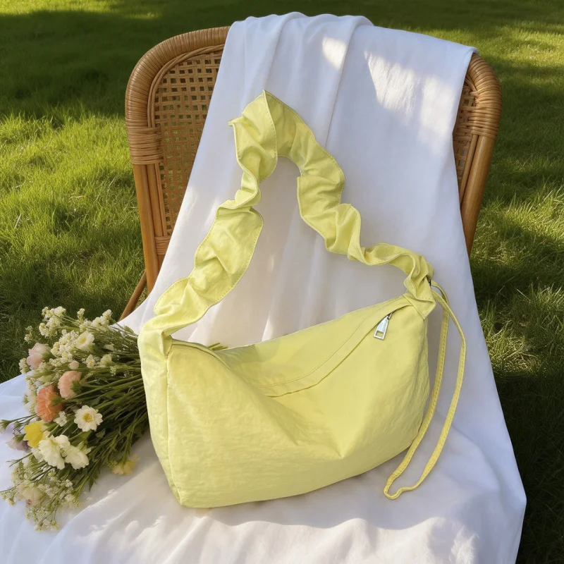 Korean-style plisované silon vodotěsný knedlík brašna pro ženy, versatile a lehoučké crossbody podpaží brašna, žlutý large-cap