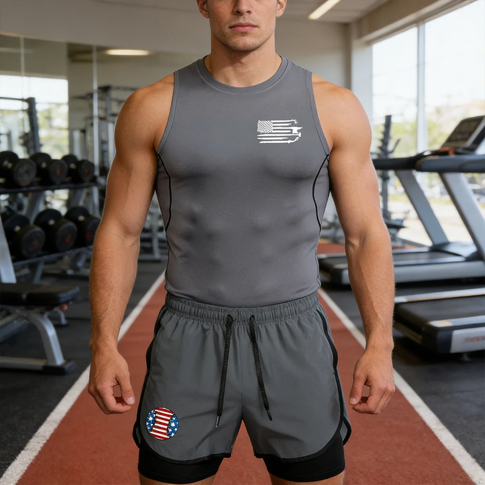 Pánské rychlý suchý fitka cvičení 2se kusu sada komprese bez rukávů košile & běžecký šortky souprava standarta grafické tisk fitka & atletický mechanismus