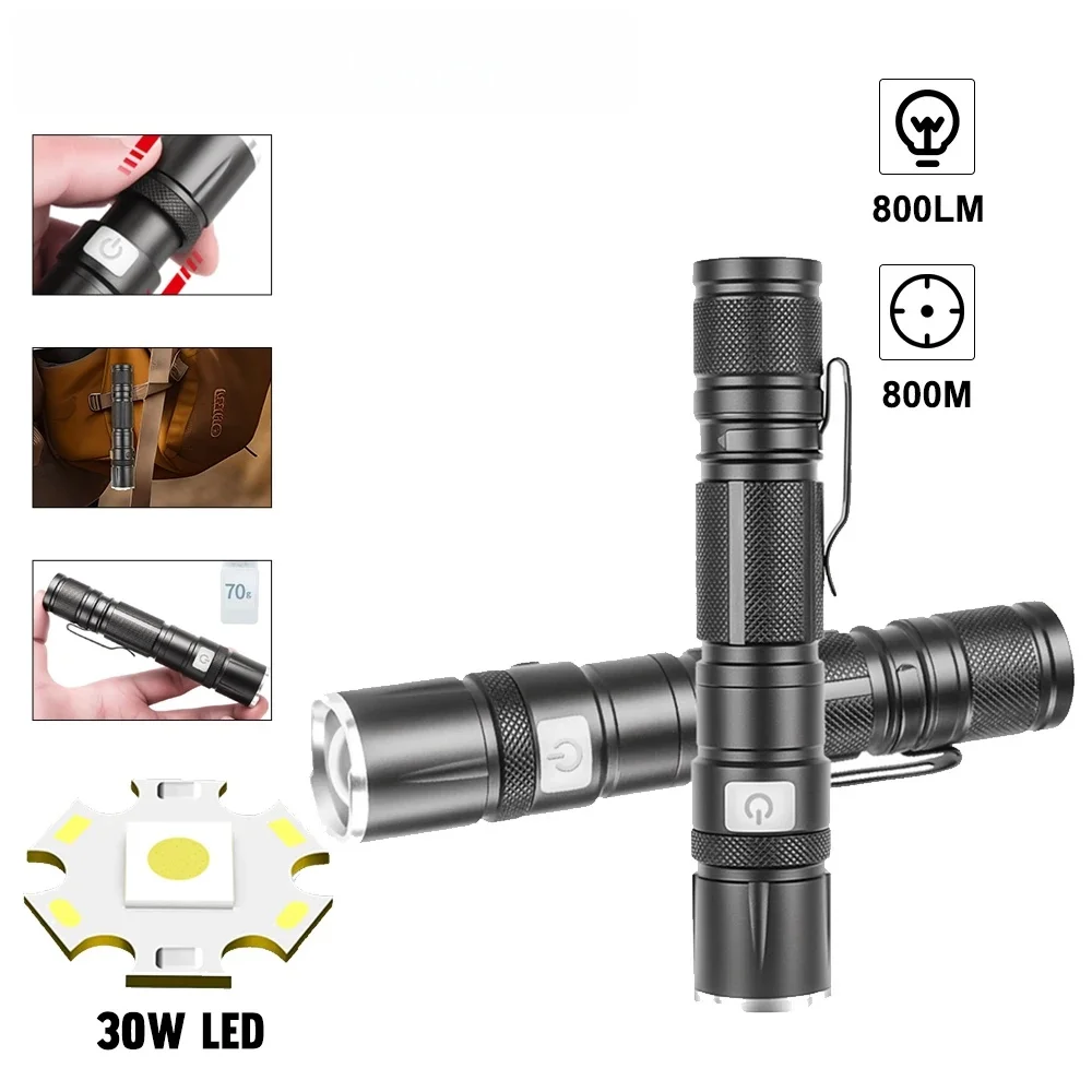 Dobíjecí sytý EDC baterka přenosné zoomovatelný floodlight s zadek silná mini kemping vodotěsný lanterna pro tramping