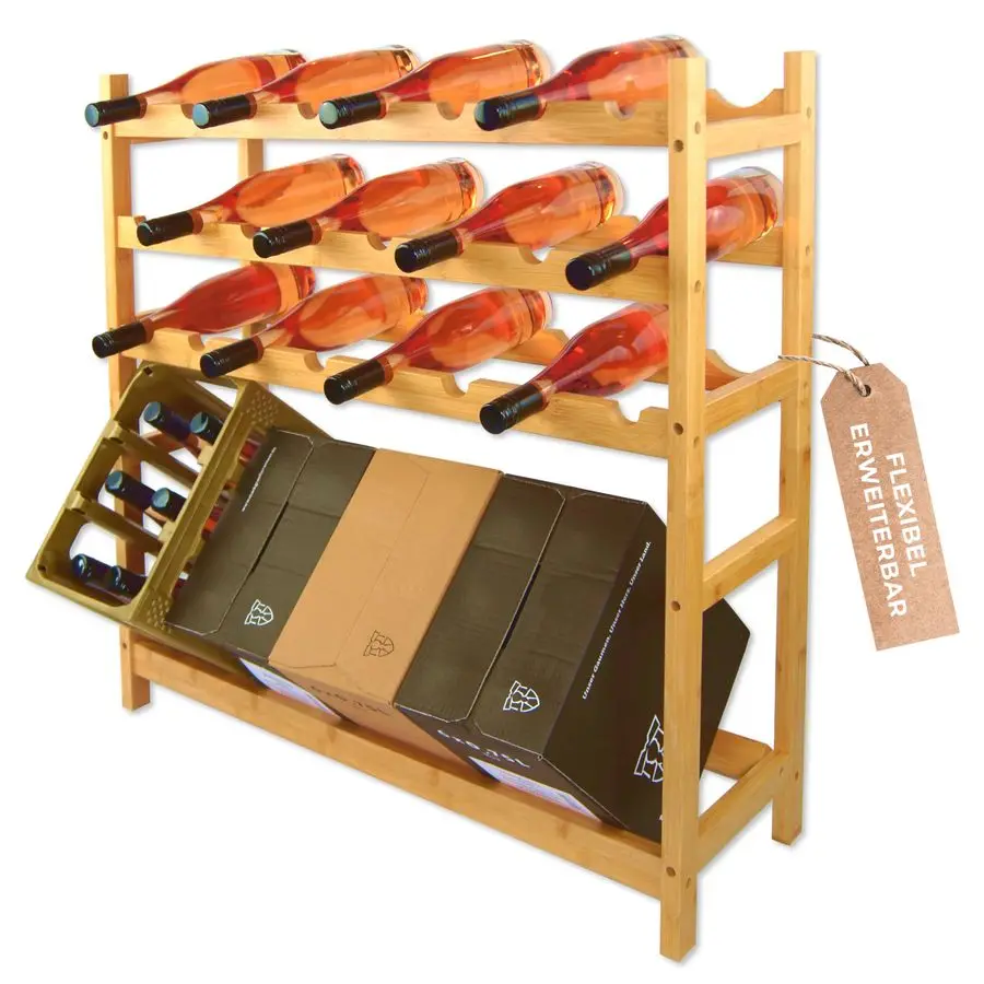 Weinregal, 24 Flaschen, 4 Weinkisten, Flaschenregal, stapelbar, Getränkeständer, erweiterbar, Weinregal stapelbar, Flaschenaufbewahrung, Flasche
