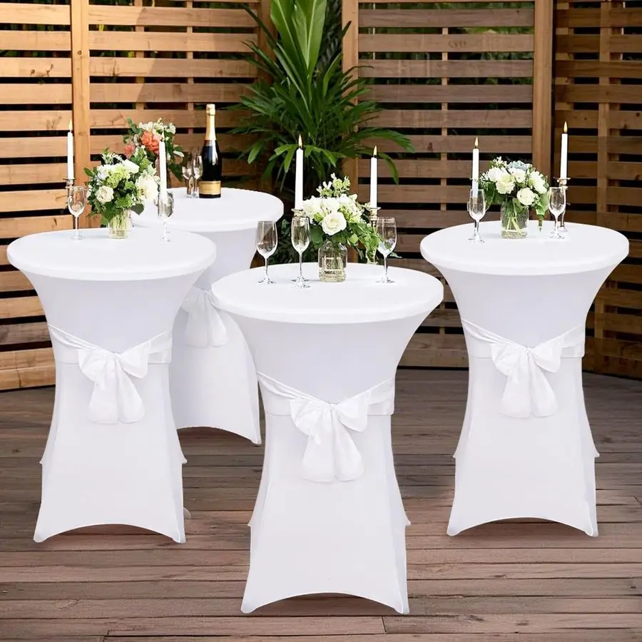 6er-Set Stehtischdecken mit Schleife, Durchmesser 70 cm, Stretch-Stehtischdecken, elegante elastische Tischdecken für Bistro-Tisch