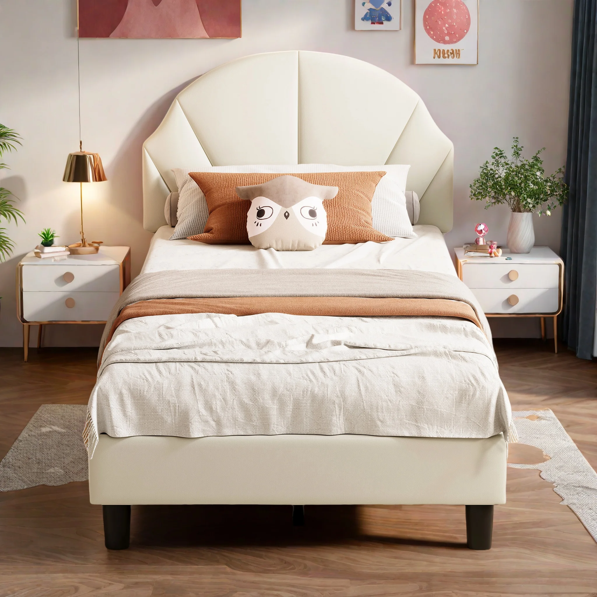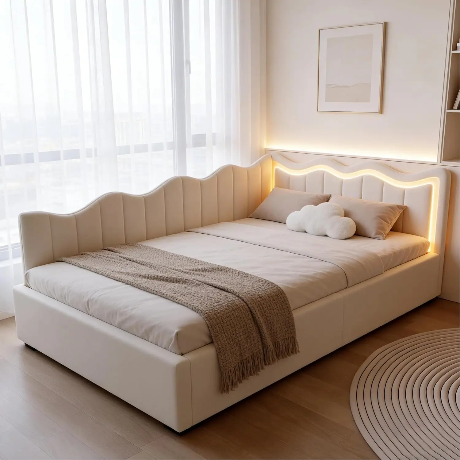 Rosahqnda Kinderbett, Mädchenbett, Prinzessinnenbett, 90/140 x 200 cm, Kopfteil mit Muschel-/Kronen-/Blütenblatt-Design, Einzel-/Doppelbett, Jugendbett, Samt
